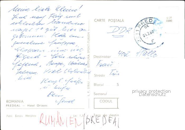 old postcard Rumaenien Predeal Hotel Orizont postalisch gelaufen Erhaltung siehe scans