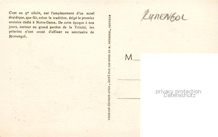 13825918 Rumengol Le Faou 29 Finistere Sanctuaire de Notre Dame de Rumengol ou de Tout Remede postalisch nicht gelaufen Erhaltung siehe scans [FriedD77] Frie Katcode 11170029229053
