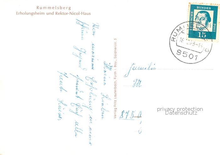 73169960 alte Postkarte Rummelsberg Erholungsheim Rektor Nicol Haus postalisch gelaufen Erhaltung siehe scans [KathaD81] KatCode: 11110009574157