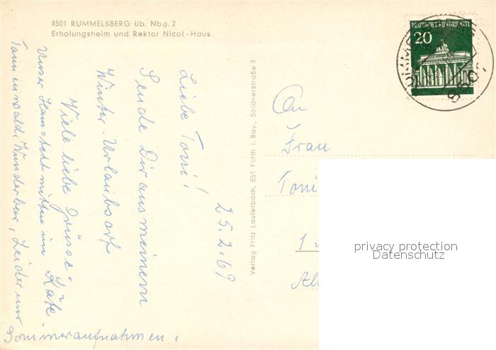 73167207 alte Postkarte Rummelsberg Erholungsheim Rektor Nicol Haus postalisch gelaufen Erhaltung siehe scans [FriedD77] KatCode: 11110009574157