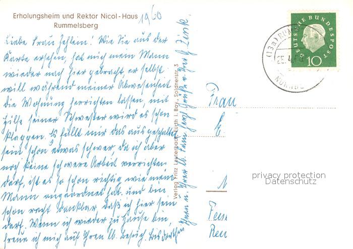 73043732 alte Postkarte Rummelsberg Erholungsheim und Rektor Nicol Haus postalisch gelaufen Erhaltung siehe scans [WerneD78] KatCode: 11110009574157
