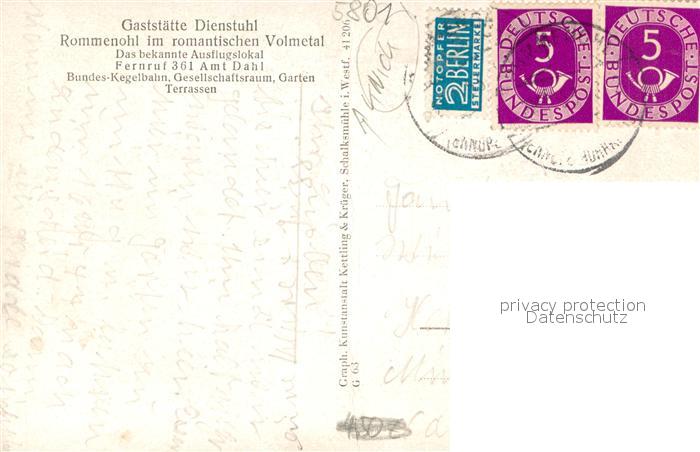 73698822 alte Postkarte Rummenohl Gaststaette Dienstuhl Terrasse postalisch gelaufen Erhaltung siehe scans [LiesaD40] KatCode: 11110005914000
