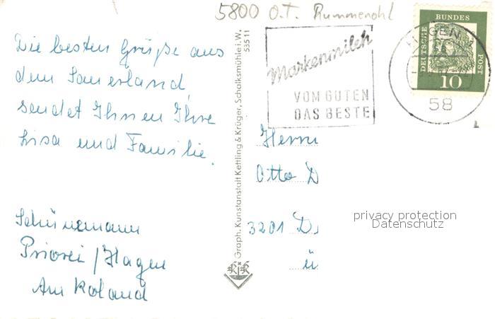 73698815 alte Postkarte Rummenohl Gesamtansicht postalisch gelaufen Erhaltung siehe scans [LiesaD40] KatCode: 11110005914000