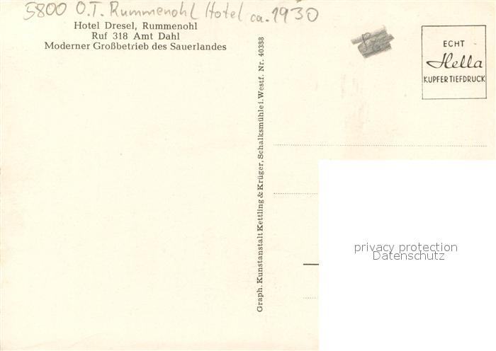 73709182 Rummenohl Hotel Dresel Aussenansicht postalisch nicht gelaufen Erhaltung siehe scans [LiesaD40] KatCode: 11110005914000