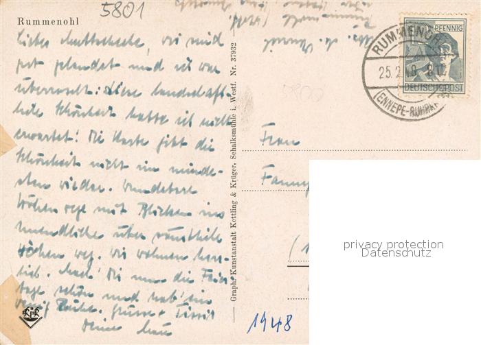 73709186 alte Postkarte Rummenohl Teilansicht postalisch gelaufen Erhaltung siehe scans [LiesaD40] KatCode: 11110005914000