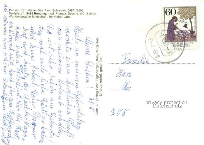 74038027 alte Postkarte Runding Cham Bayern Pension Christiane Gastraum Panorama postalisch gelaufen Erhaltung siehe scans [WerneD78] KatCode: 11110009372155