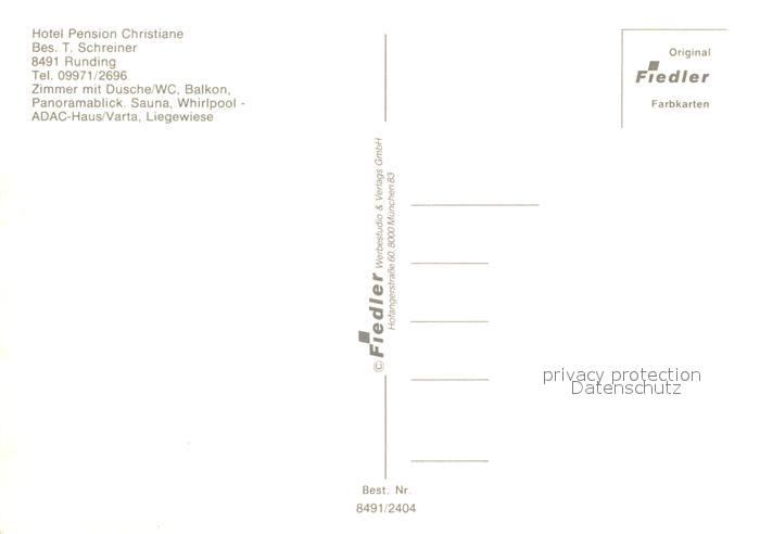 73166979 Runding Cham Hotel Pension Christiane postalisch nicht gelaufen Erhaltung siehe scans [KathaD81] KatCode: 11110009372155