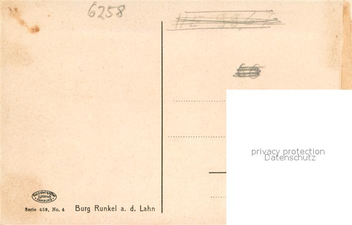 73696455 Runkel Lahn Burg Knackstedt Lichtdruck Serie 459 No. 4 Kuenstlerkarte postalisch nicht gelaufen Erhaltung siehe scans [FriedD77] KatCode: 11110006533013