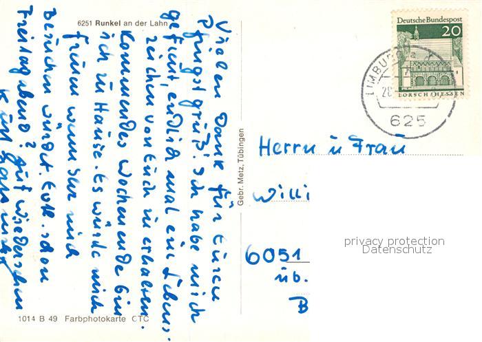 73235070 alte Postkarte Runkel Lahn Panorama Burg postalisch gelaufen Erhaltung siehe scans [KathaD81] KatCode: 11110006533013