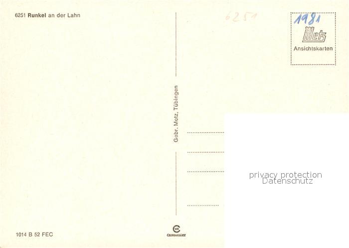 73215302 Runkel Lahn postalisch nicht gelaufen Erhaltung siehe scans [PaolaD17] KatCode: 11110006533013