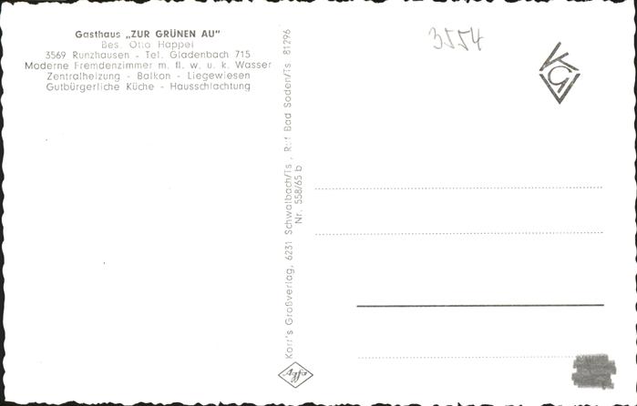 41274781 Runzhausen Gasthaus Zur Grünen Au KatCode 11110006534010