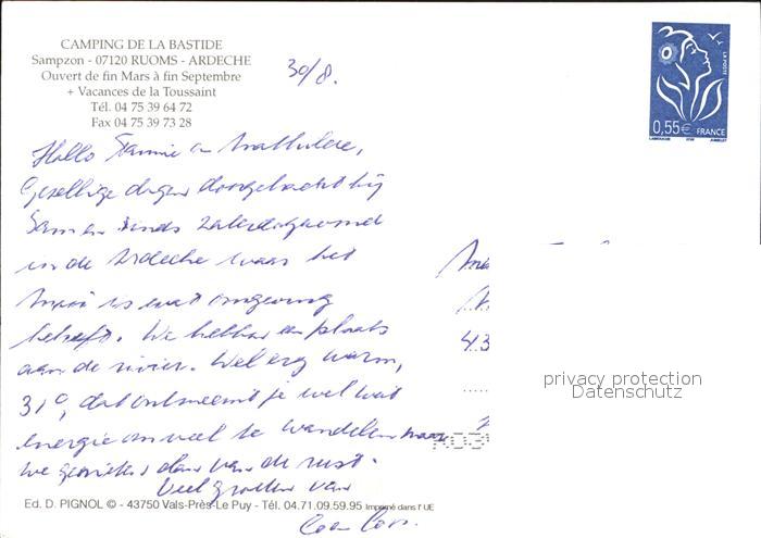 12005325 Ruoms Camping de la Bastide Wildwasser postalisch nicht gelaufen Erhaltung siehe scans KatCode: 11170007107201