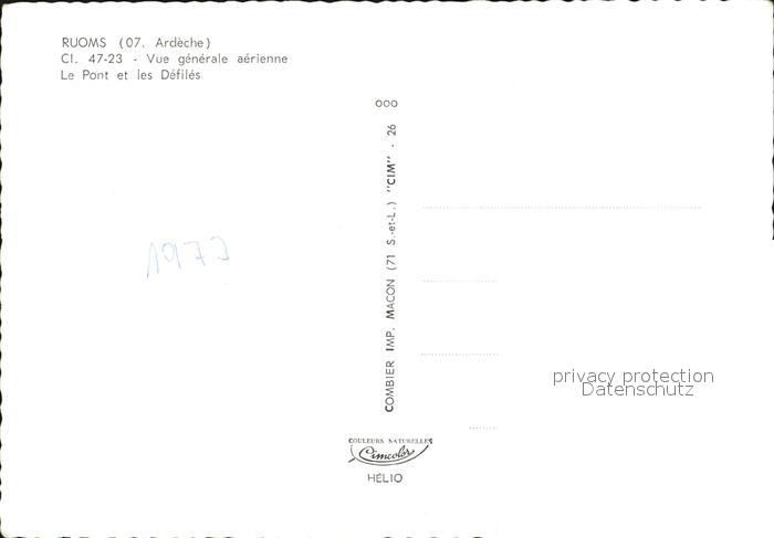 12454910 Ruoms Pont et les Defiles vue aerienne postalisch nicht gelaufen Erhaltung siehe scans KatCode: 11170007107201