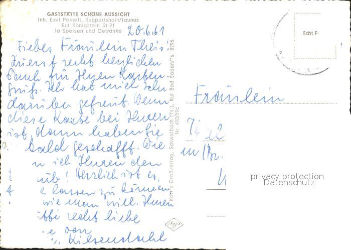 72196192 alte Postkarte Ruppertshain Bad Schwalbach Falkenstein Reifenberg Oberursel Totalansicht Altweilnau Schmitten Bad Soden Koenigstein Kronsberg Eppstein Wildpark postalisch gelaufen Erhaltung siehe scans KatCode: 11110006436008