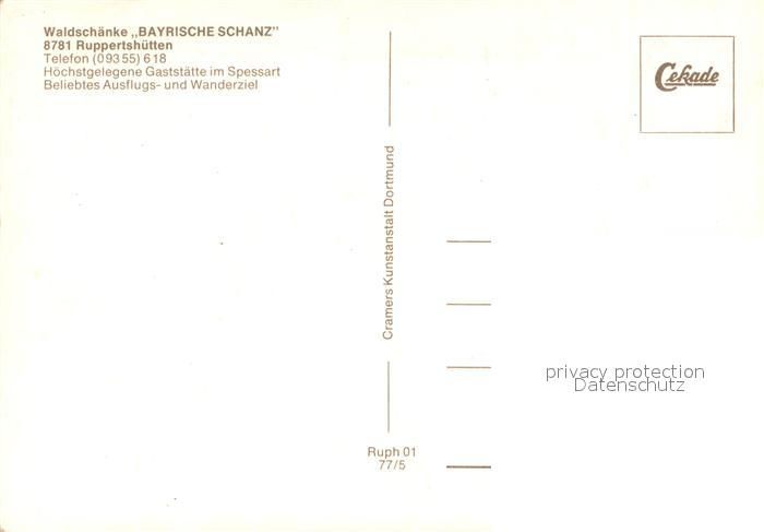 73715916 Ruppertshuetten Waldschaenke Bayrische Schanz Gastraeume postalisch nicht gelaufen Erhaltung siehe scans [WerneD78] KatCode: 11110009677155