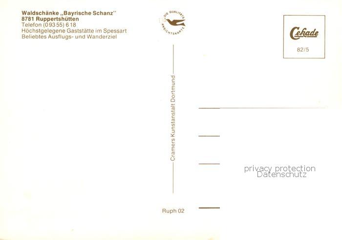 73836605 Ruppertshuetten Waldschaenke Bayrische Schanz postalisch nicht gelaufen Erhaltung siehe scans [WerneD78] KatCode: 11110009677155