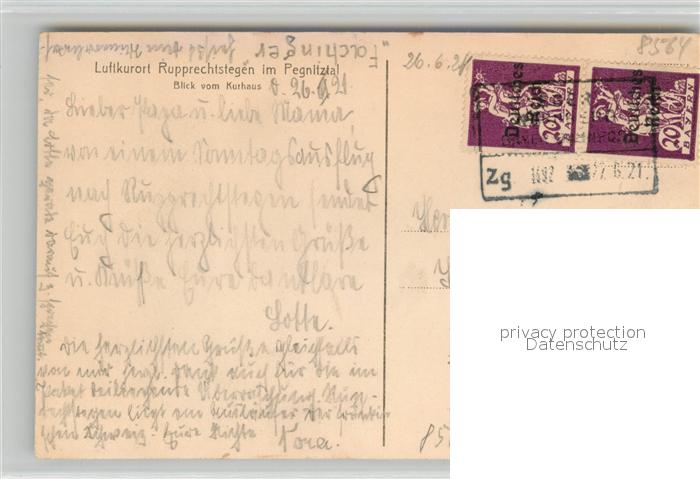 43343630 alte Postkarte Rupprechtstegen Blick vom Kurhaus postalisch gelaufen Erhaltung siehe scans [WerneD78] KatCode: 11110009574129