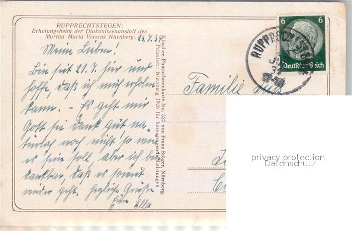 42988072 alte Postkarte Rupprechtstegen Erholungsheim der Diakonissenanstalt postalisch gelaufen Erhaltung siehe scans [AndreD76] KatCode: 11110009574129
