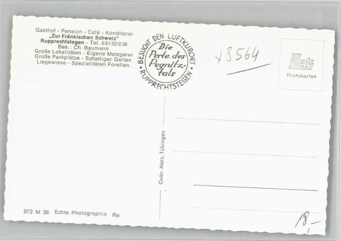 40233698 Rupprechtstegen Gasthof Cafe Konditorei zur Fraenkischen Schweiz * 1955 KatCode 11110009574129