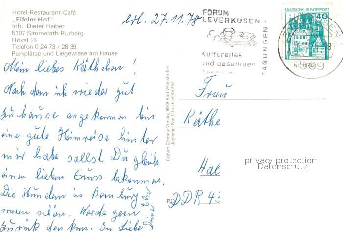 73641830 alte Postkarte Rurberg Hotel Restaurant Eifeler Hof Gastraeume Panorama postalisch gelaufen Erhaltung siehe scans [WerneD78] KatCode: 11110005354028