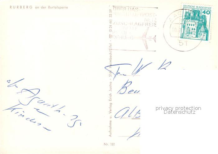 73311436 alte Postkarte Rurberg Rurtalsperre Panorama postalisch gelaufen Erhaltung siehe scans [KathaD81] KatCode: 11110005354028