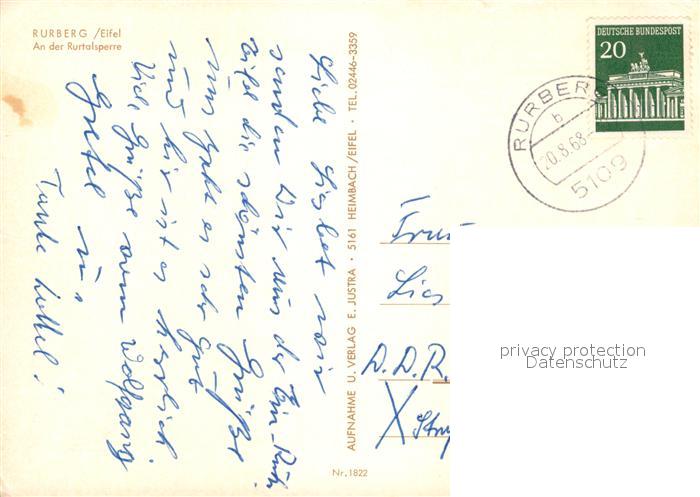 73175238 alte Postkarte Rurberg Rurtalsperre postalisch gelaufen Erhaltung siehe scans [KathaD81] KatCode: 11110005354028