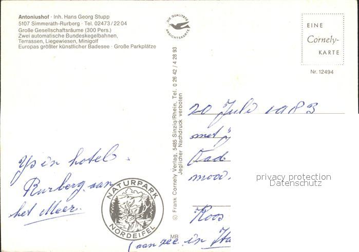 72314250 Rurberg Simmerath Eifel NRW Cafe Restaurant Antoniushof Terrasse Schwimmbad Naturpark Nordeifel postalisch nicht gelaufen Erhaltung siehe scans KatCode: 11110005354028