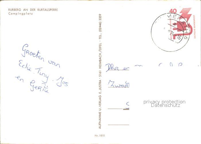 72223238 alte Postkarte Rurberg Simmerath Eifel NRW Campingplatz postalisch gelaufen Erhaltung siehe scans KatCode: 11110005354028