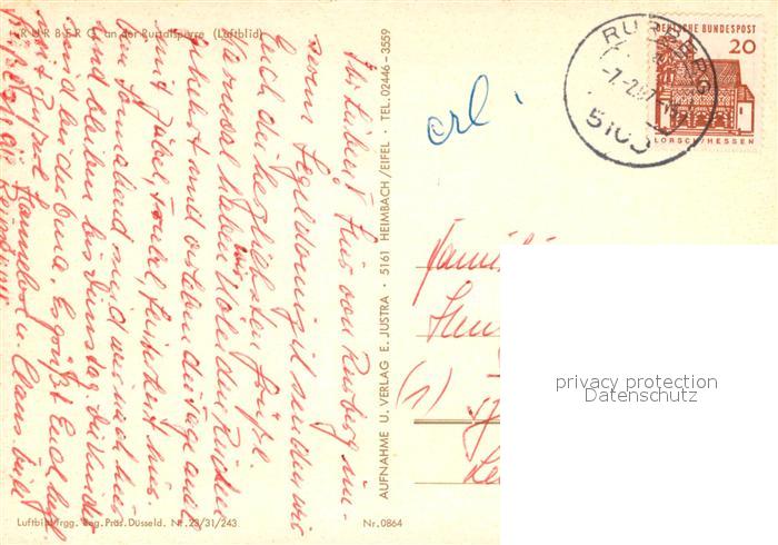 73681413 Rurberg Simmerath Eifel NRW Fliegeraufnahme an der Rurtalsperre postalisch gelaufen Erhaltung siehe scans [LiesaD40] alte Postkarte Lies Katcode 11110005354028