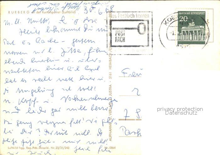 72076798 alte Postkarte Rurberg Simmerath Eifel NRW Fliegeraufnahme Rurtalsperre postalisch gelaufen Erhaltung siehe scans KatCode: 11110005354028