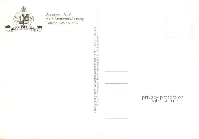 73801100 Rurberg Simmerath Eifel NRW Hotel Paulushof Restaurant Hallenbad postalisch nicht gelaufen Erhaltung siehe scans [WerneD78] Wern Katcode 11110005354028