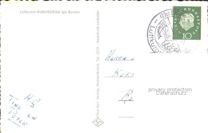 72165519 alte Postkarte Rurberg Simmerath Eifel NRW Rursee Jugendherberge postalisch gelaufen Erhaltung siehe scans KatCode: 11110005354028