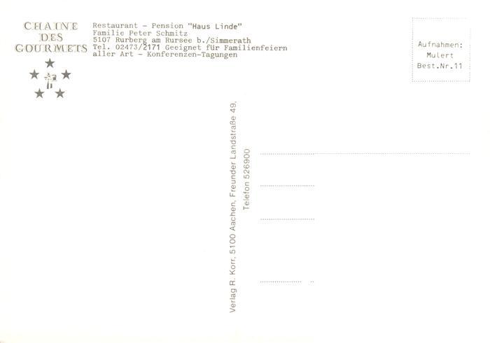 73902182 Rurberg Simmerath Restaurant Haus Linde Gastraum Zimmer postalisch nicht gelaufen Erhaltung siehe scans [WerneD78] KatCode: 11110005354028