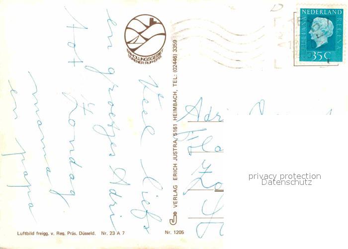 72661203 alte Postkarte Rurtalsperre Schwammenauel Fliegeraufnahme Fahrgastschiff Hafen Segelboote postalisch gelaufen Erhaltung siehe scans [WerneD78] KatCode: 11110005358012