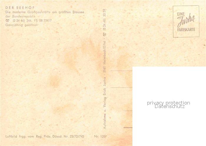 72701010 Rurtalsperre Schwammenauel Gaststaette Der Seehof Staumauer Dampfer Segelregatta Fliegeraufnahme postalisch nicht gelaufen Erhaltung siehe scans [FriedD77] KatCode: 11110005358012