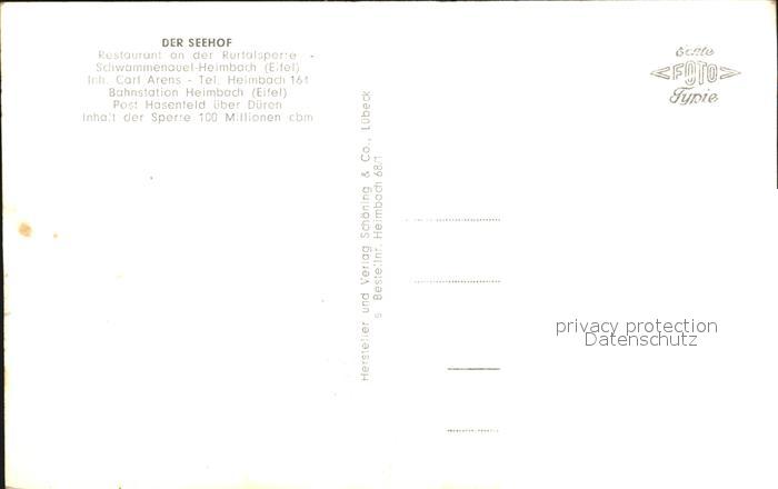 72432935 Rurtalsperre Schwammenauel mit Seehof postalisch nicht gelaufen Erhaltung siehe scans KatCode: 11110005358012