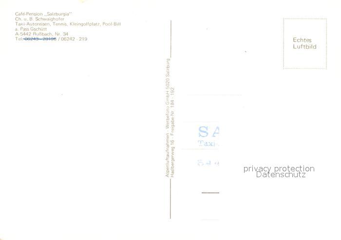 73588260 Russbach Pass Gschuett Cafe Pension Salzburgia Fliegeraufnahme postalisch nicht gelaufen Erhaltung siehe scans [FriedD77] KatCode: 11390323050210