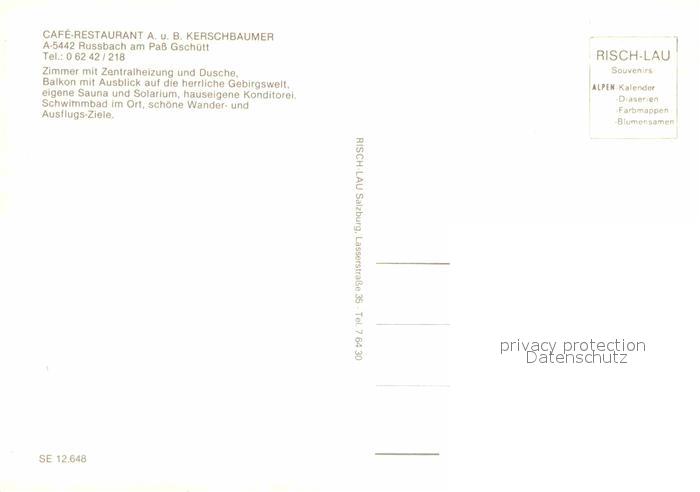 12871438 Russbach Pass Gschuett Cafe-Restaurant Kerschbaumer postalisch nicht gelaufen Erhaltung siehe scans [PaolaD17] KatCode: 11390323050210