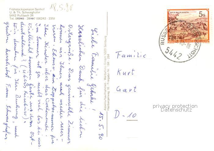 73166524 alte Postkarte Russbach Pass Gschuett Pension Sanhof Fliegeraufnahme postalisch gelaufen Erhaltung siehe scans [FriedD77] KatCode: 11390323050210