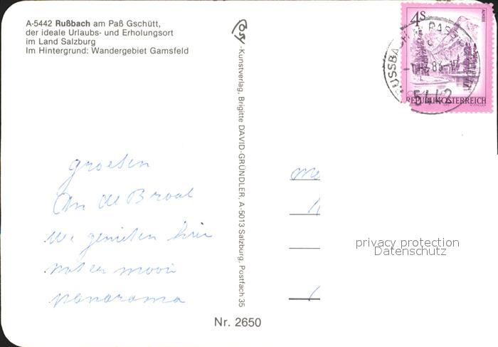 72223787 alte Postkarte Russbach Pass Gschuett Wandergebiet Gamsfeld postalisch gelaufen Erhaltung siehe scans KatCode: 11390323050210
