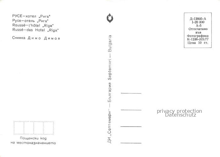 74040324 Russe Rousse Roustchouk Ruse BG Hotel Riga postalisch nicht gelaufen Erhaltung siehe scans [IrynaD87] KatCode: 11090
