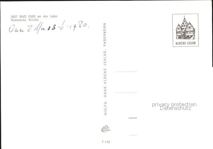 Russische Kirche Kapelle Bad Ems postalisch nicht gelaufen Erhaltung siehe scans