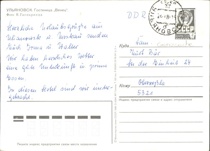 old postcard Russland Hotel Venez postalisch gelaufen Ganzsache (eingedruckte Briefmarke) Erhaltung siehe scans