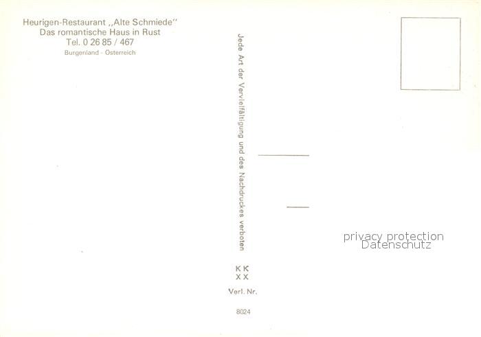 73264838 Rust Burgenland Alte Schmiede Heurigen Restaurant postalisch nicht gelaufen Erhaltung siehe scans [KathaD81] KatCode: 11390112010201