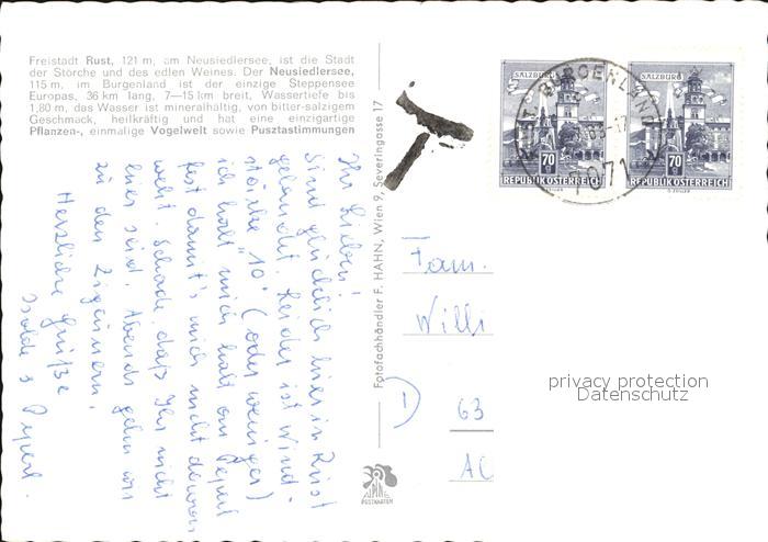 72460600 alte Postkarte Rust Burgenland Hafen Stoerche Segler postalisch gelaufen Erhaltung siehe scans KatCode: 11390112010201