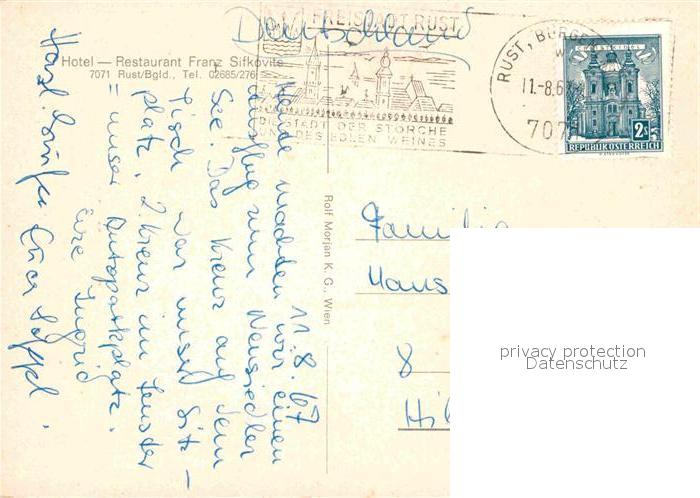 12602841 alte Postkarte Rust Burgenland Hotel Restaurant Franz Sifkovits postalisch gelaufen Erhaltung siehe scans [LiesaD40] KatCode: 11390112010201