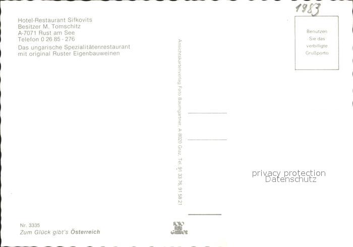 72141294 Rust Burgenland Hotel Restaurant Sifkovits Gastraum Speisesaal Park postalisch nicht gelaufen Erhaltung siehe scans KatCode: 11390112010201