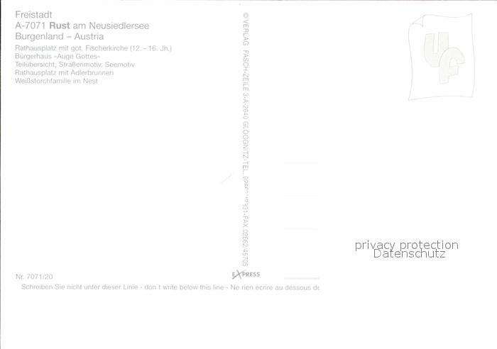 72444439 Rust Burgenland Rathausplatz Fischerkirche Buergerhaus Strassenpartie See Brunnen Stoerche postalisch nicht gelaufen Erhaltung siehe scans KatCode: 11390112010201