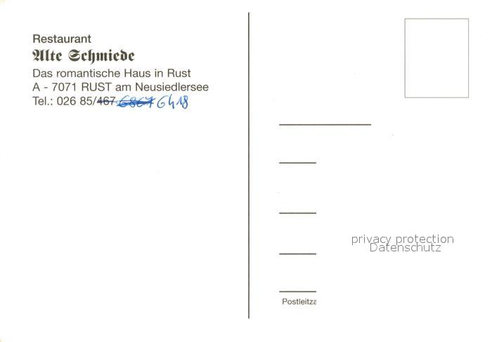 73642343 Rust Burgenland Restaurant Alte Schmiede Details postalisch nicht gelaufen Erhaltung siehe scans [WerneD78] KatCode: 11390112010201