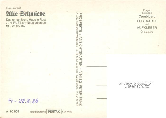 73630320 Rust Burgenland Restaurant Alte Schmiede Gastraeume Terrasse Skulptur Fahrgastschiff postalisch nicht gelaufen Erhaltung siehe scans [WerneD78] KatCode: 11390112010201